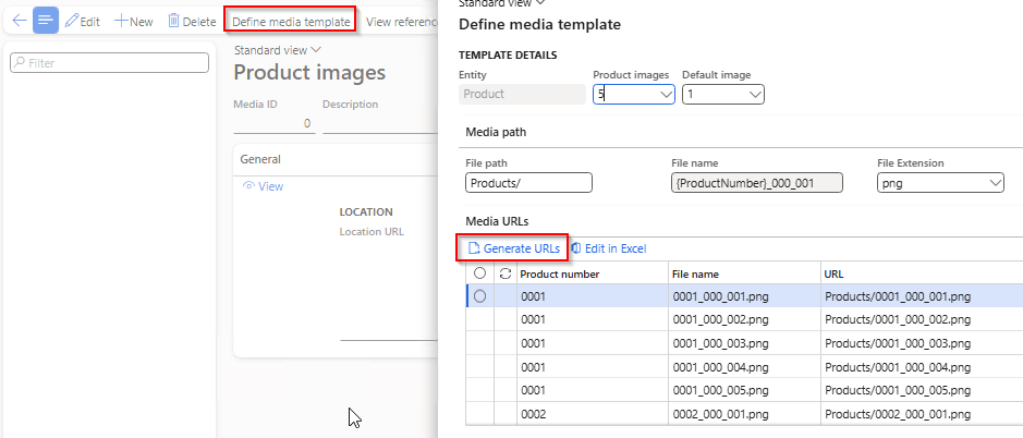 • Generate URLS from the Define media template feature in the Product images form: